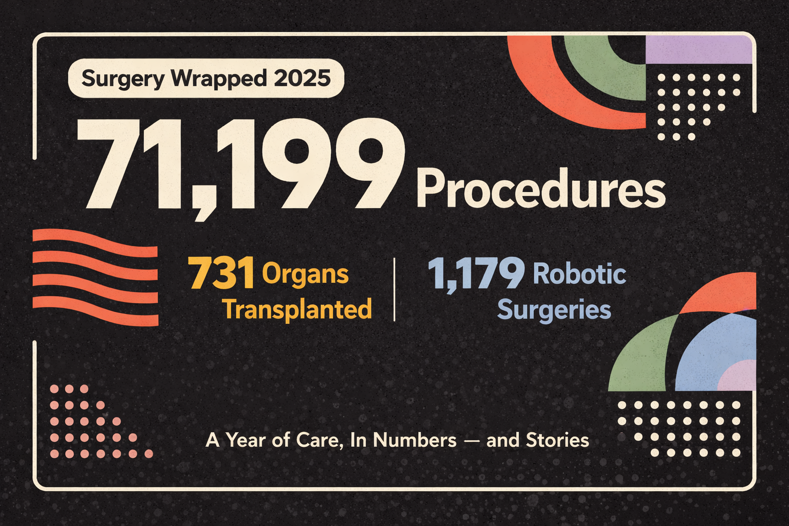 Surgery Wrapped isn’t about ranking or records. It’s about reflection. About pausing long enough to see what a year of care really looks like when you zoom out, and remembering that every number carries a story within it.